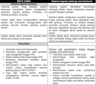 Apa perbedaan antara operasi bypass jantung sayatan minimal MICS CABG dan operasi bypass jantung konvensional?